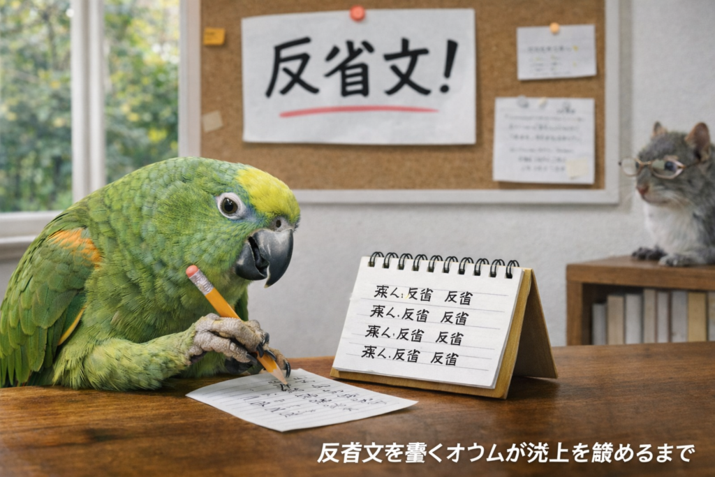 小説「反省文を書くオウムが炎上を鎮めるまで」の後日談と続編は、noteにて公開しています。
