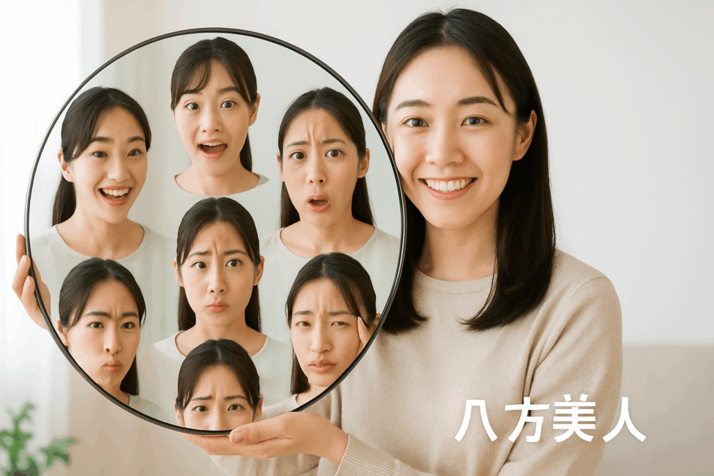 鏡の中には八方向に自分の表情を映し出す特殊な鏡――通称「八方ミラー」。