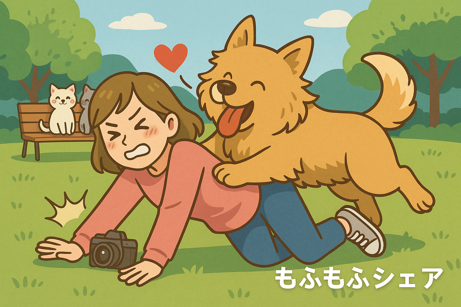 けれど、もふもふの体温と、鼻息のリズムと、芝生の匂いが、心の奥で柔らかいクッションになっている。