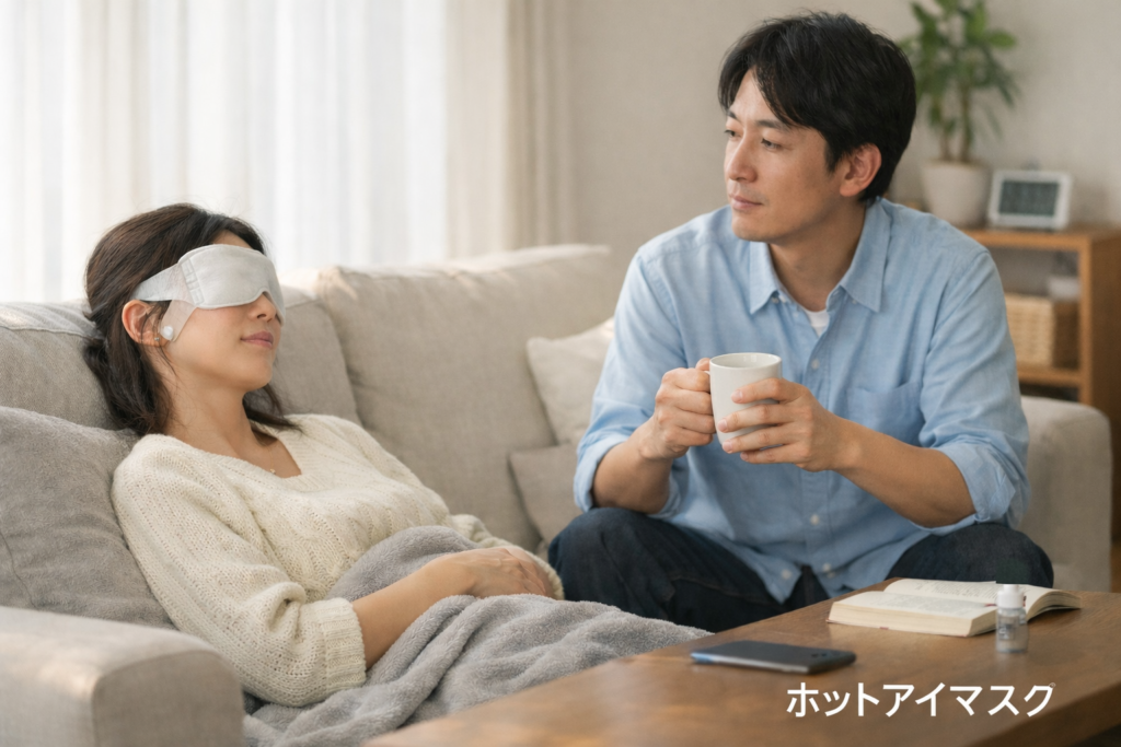 帰宅して灯りを落とすと、棚の引き出しから温熱のアイマスクを取り出した。